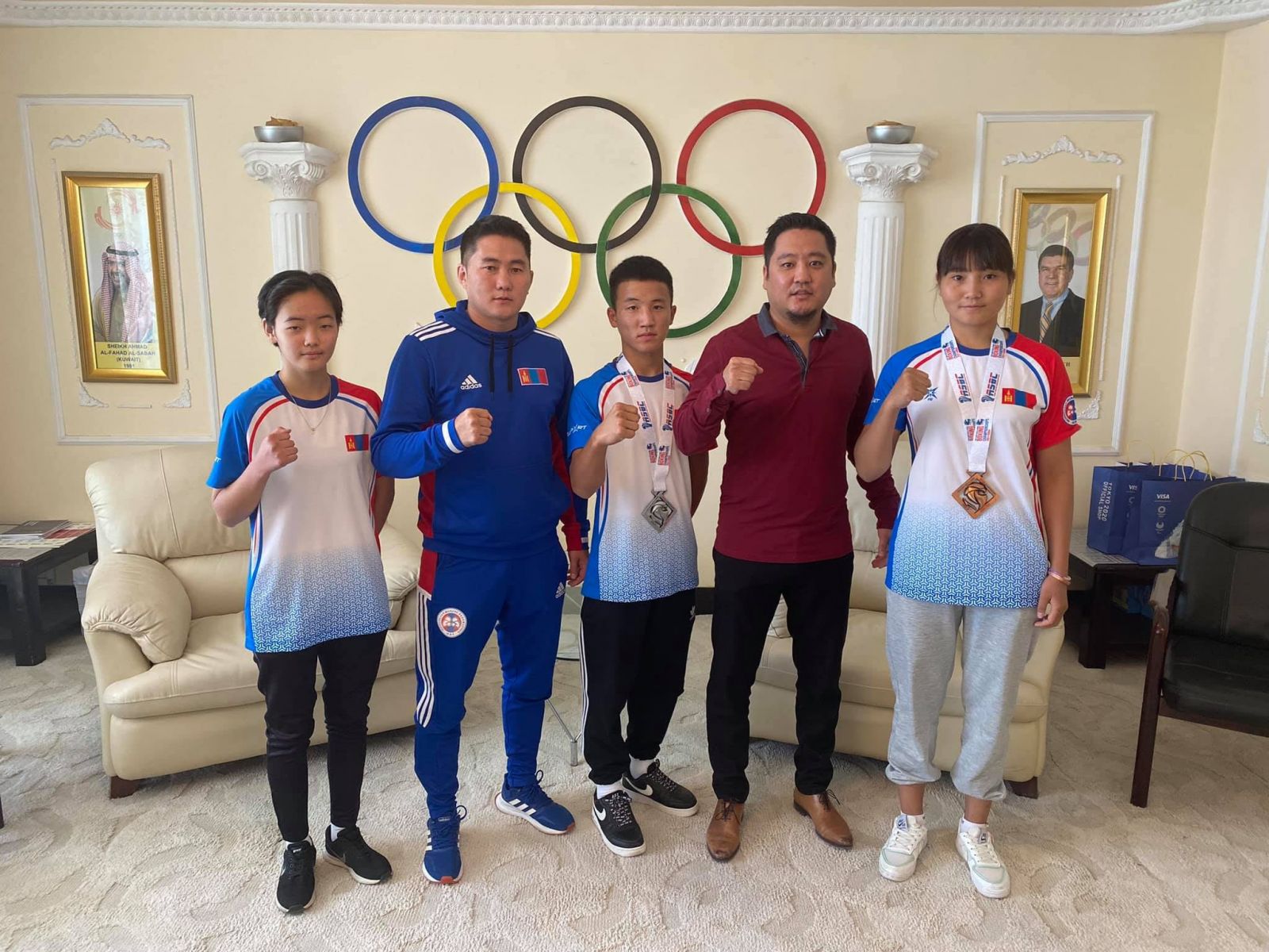 Наймдугаар сарын 17-30-нд АНЭУ-ын нийслэл Дубай хотноо боксын өсвөр үе, залуучуудын Азийн АШТ явагдсан. 15 орны 269 ширэн бээлийтэн өрсөлдсөн тэрхүү тэмцээнээс О.Түвшинзаяа мөнгө, М.Цэцэгдарь, О.Есөнхүслэн, Д.Гэрэлсайхан нар хүрэл медаль хүртсэн билээ. Тэгвэл медаль хүртсэн тамирчдыг дасгалжуулагч Ж.Еркиний хамт МҮОХ-ны ерөнхий нарийн бичгийн дарга, олимпын аварга Э.Бадар-Ууган хүлээн авч уулзан баяр хүргэж, хувиасаа гарын бэлэг гардууллаа.