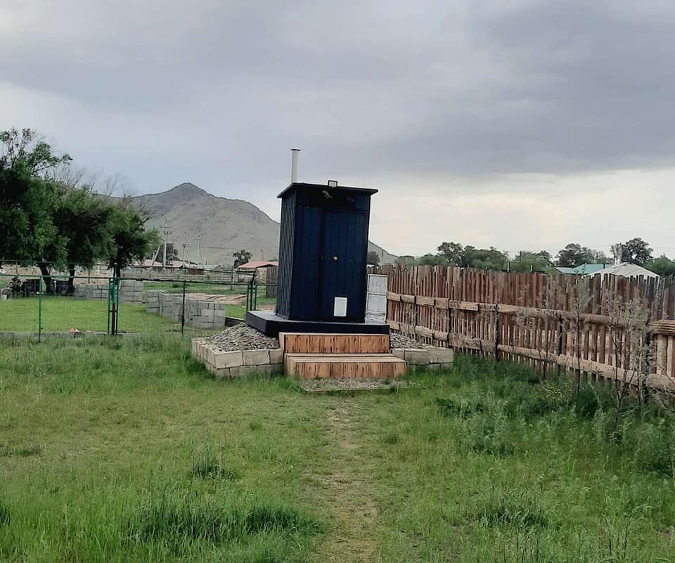 Айл өрхөд суурилуулсан ариун цэврийн байгууламж нь техникийн тодорхойлолтод заасан MNS 5924:2015 стандартын дагуу ялгадас хуримтлуулах нүх, шал, бүхээг, хаяавч, агааржуулалтын хоолой зэрэг үндсэн хэсгээс бүрдэнэ. Нүхэнд суурилуулсан кольцо нь хөрсөнд нэвчилтгүй цутгамал бетон хийцтэй, нүхний гүн 1,8 метр, эзлэхүүн 3м3, амсар бүхээгийн хананаас гадагш 25 см илүү гарсан, ачаалал даахуйц бетон цутгамал шалтай, бүхээгийг төмөр рамаар зангидсан. Нар, салхи, цас, бороонд тэсвэртэй төмөр листтэй. Зориулалтын агааржуулалтын хоолойгоор тоноглогдсон. Бүхээгийн дотор гадна талд сэргээгдэх эрчим хүчний эх үүсвэр бүхий нарны зайн хураагууртай гэрэлтүүлэг, өдрийн гэрэл нэвтрүүлэх цонхтой хийсэн.