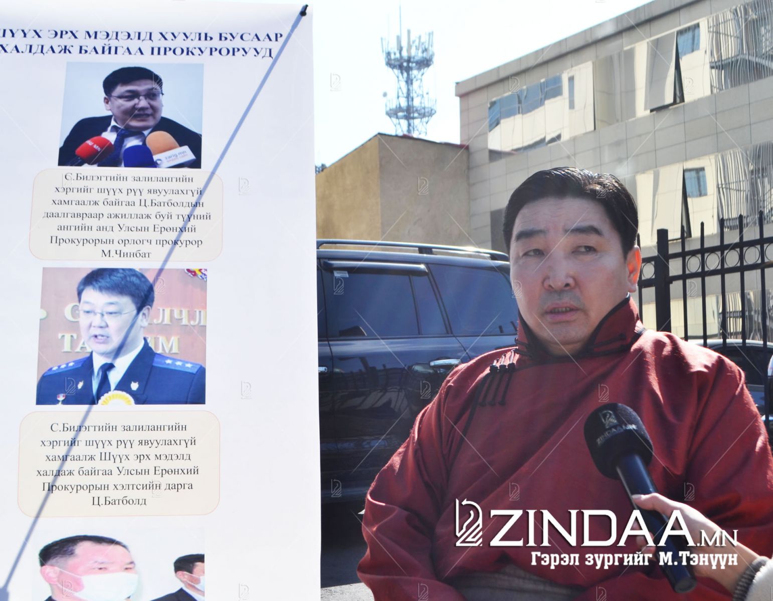 Миний бүлэг этгээдүүдэд залилуулсан гэх гомдлыг шүүхийн байгууллага руу явуулахгүй гээд Улсын Ерөнхий прокурорын орлогч М.Чинбат цээжээрээ хамгаалаад сууж байна. Намайг өргөдөл өгөх үед Ц.Батболд гэх хүн Баянзүрх дүүргийн прокурор байсан. Одоо УЕП-ын хэлтсийн дарга болчихсон байна. Дээрээсээ гурав дахь албан тушаалтан болсон гэсэн үг. Эд нар төрийн шүүх эрх мэдэлд халдаж байна. Монгол улсын үндсэн хуульд шүүх эрх мэдэл гагцхүү шүүгчид л байгаа. Гэм бурууг шүүх тогтооно.