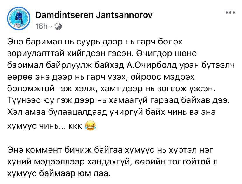 Ж.Дамдинцэрэн цахим хуудсаараа дамжуулан энэ үйлдэлдээ тайлбар хийжээ.