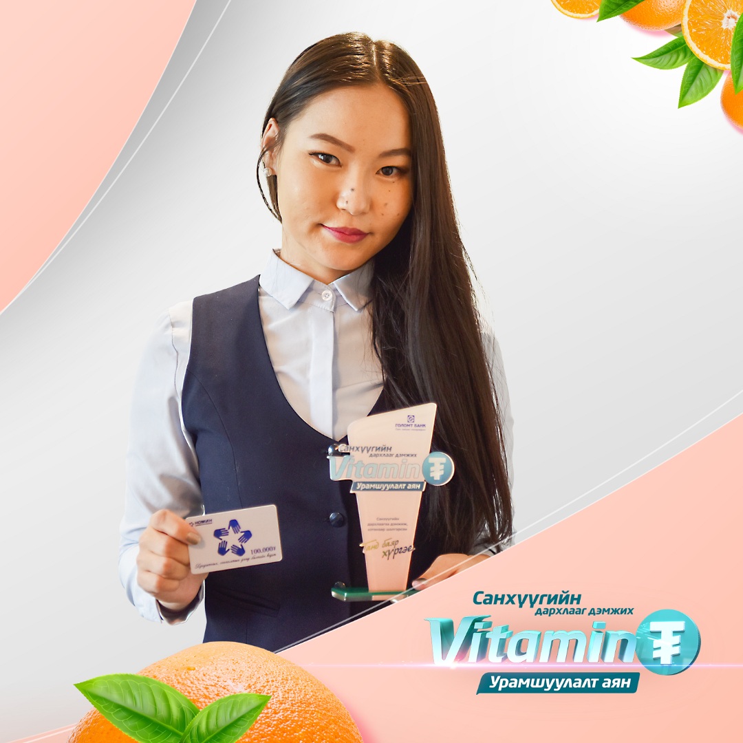 Та ч бас хуримтлалаар санхүүгийн дархлаагаа дэмжин “Витамин ₮” урамшуулалт аяны азтан болох боломжтой. “Витамин ₮” аянд хэрхэн оролцох зааврын талаар дэлгэрэнгүй мэдээллийг ЭНД дарж үзнэ үү.