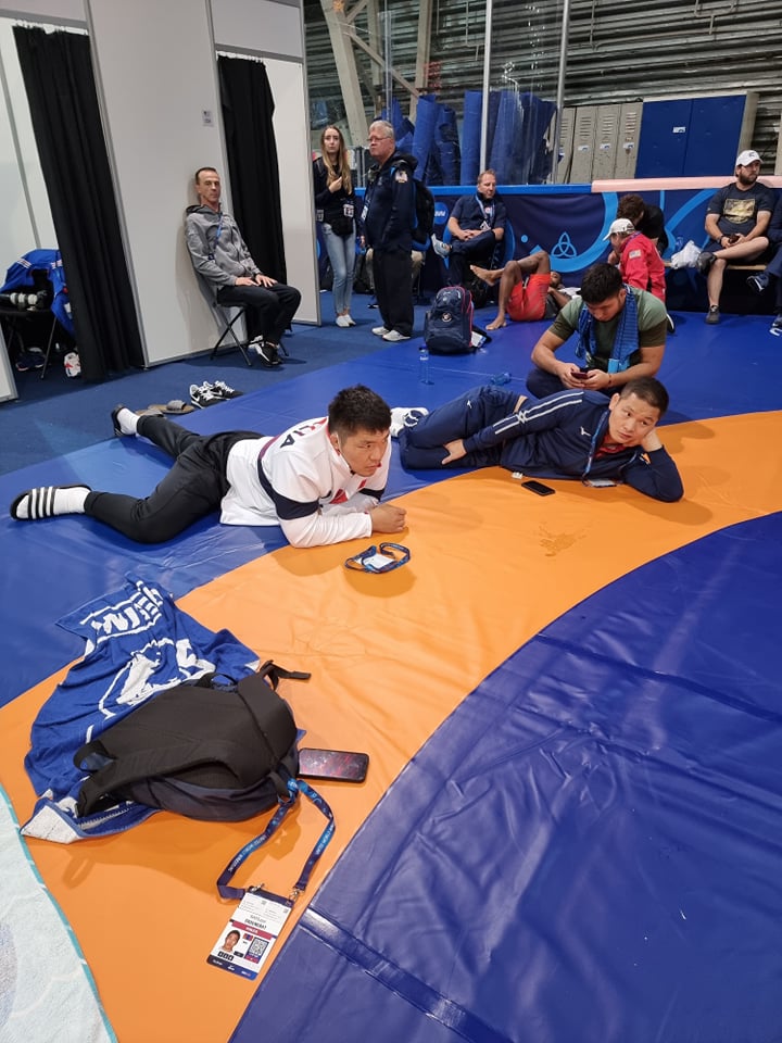 Одоо тамирчид маань бүгд бэлтгэлийн танхимд ирээд байна. Өнөөдөр барилдах бөхчүүд бүгд жиндээ амжилттай орлоо. Одоо ковидийн шинжилгээ өгнө.