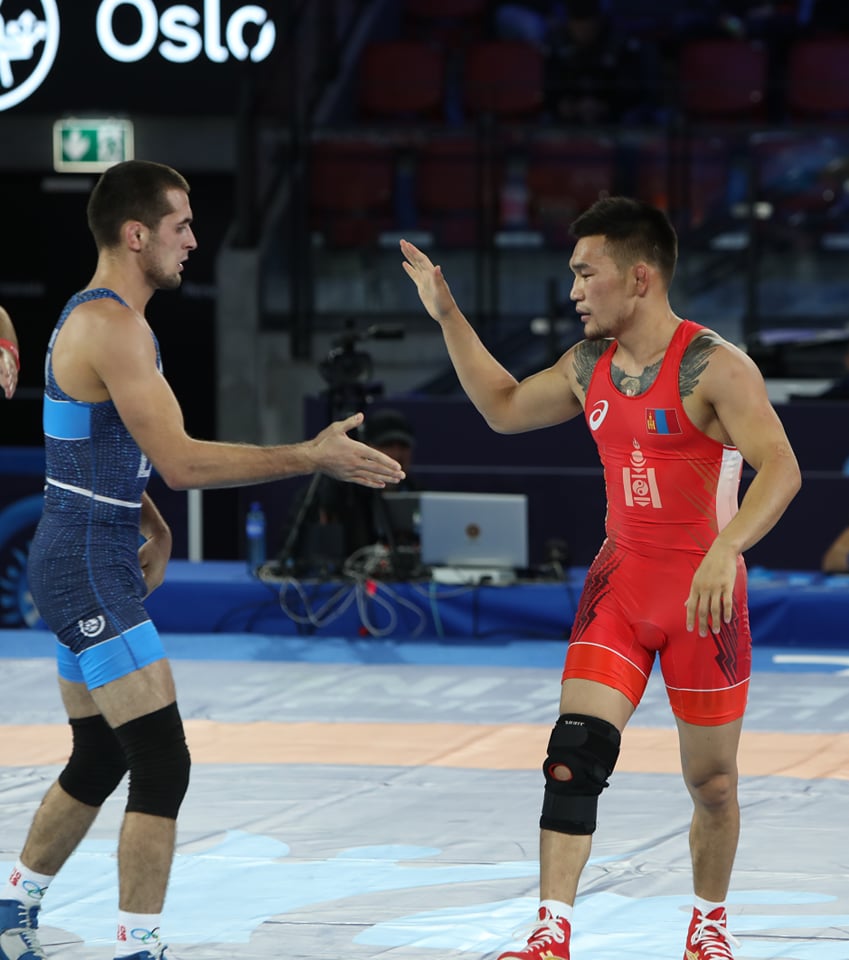92 кг-д Д.Оргилох дэлхийн хошой аварга АНУ-ын Жэйден Кокстой оноолт таараад байгаа.