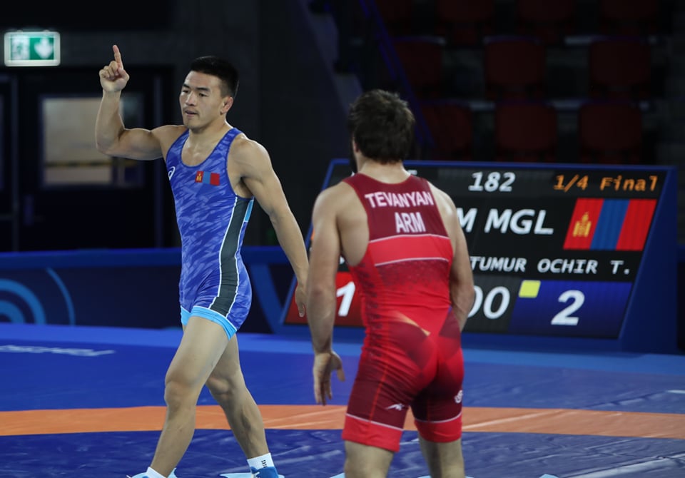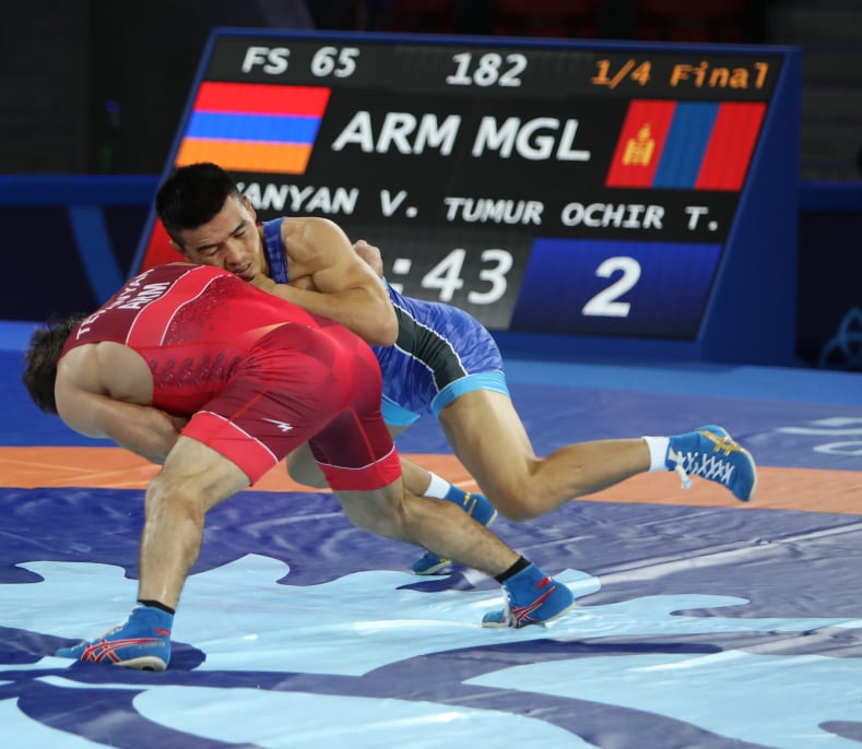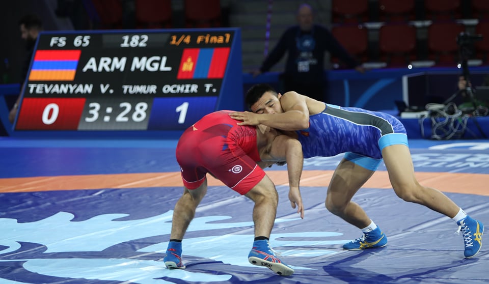 Шөвгийн наймд Армений Вазген Теваньянтай барилдаж, 2-1 ялснаар шилдэг 4-т шалгарлаа. Манай бөх өрсөлдөгчөө хоёр удаа 30 секундээр торгуулж, 2 оноо авсан. Барилдааны сүүлд нэг оноо алдсан ч хамгаалж чадлаа.