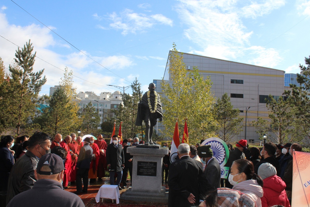 Махатма Гандигийн мэндэлсний 152 жилийн ойд (1869-1948) зориулан Энэтхэг улсаас Монгол Улсад суугаа ЭСЯ-наас Улаанбаатар хотын Махатма Гандийн гудамжинд ёслолын ажиллагаа зохион байгууллаа.