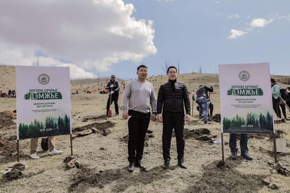 Баянзүрх дүүргээс сонгогдсон УИХ-ын гишүүд, Нийслэл, дүүргийн төлөөлөгчид, төрийн албан хаагчид хамтран дүүргийн 11,20,23 дугаар хорооны 4 байршил 143.2 га талбайд 200.000 гаруй мод, бут тарьж түүнийгээ усалж тордож байна.