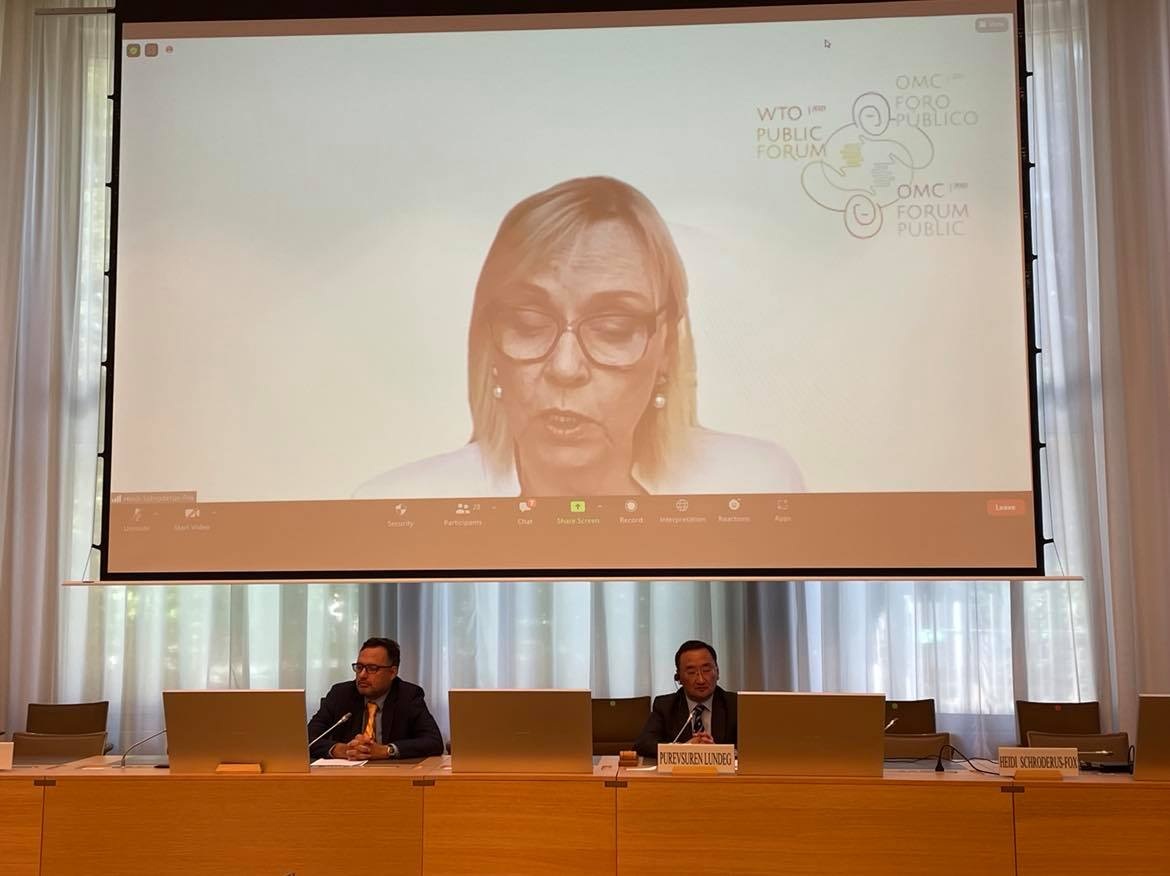 Дэлхийн худалдааны байгууллага (ДХБ)-ын Public Forum 2021 арга хэмжээний үеэр буюу 2021 оны аравдугаар сарын 1-ний өдөр “Цар тахлын дараах ертөнц дэх Далайд гарцгүй хөгжиж буй орнууд (ДГХБО)-ын үйлдвэрлэлийн чадавхыг бэхжүүлэх нь” сэдэвт хэлэлцүүлэг болов.