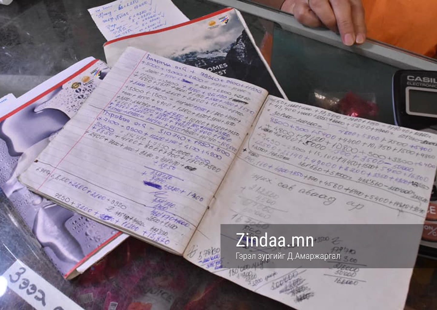 Чингэлтэй дүүргийн есдүгээр хороонд нийтийн байрнуудын дунд байрлах “Өгөөмөр баян дэнж” дэлгүүр рүү орлоо. Худалдагч эгээ л утсаа оролдон сууж байв. Түүнээс иргэдийн худалдан авалт ямар байгааг асуухад өмнөх дэлгүүрийн худалдагчдын үгийг давтаж байлаа. "Өмнө нь хүмүүс талх авахдаа хольж идэх вариан, молко авдаг байсан. Одоо бол ганц талх л авч байна. Зээл их гуйдаг болсон. Өрийн дэвтэр маань өдрөөс өдөрт зузаарсаар л байна. Хамгийн дээд тал нь 300 гаруй мянган төгрөгийн өртэй хүн байгаа. Нэг хүн 600 гаруй мянган төгрөгийн өртэй байсан. 200 мянгаар нь хувааж төлөөд дуусаж байна. Идэх хоолгүй, хүүхэд өлсөөд байна гэхээр аргагүй эрхэнд өрөвдөөд зээл өгчихдөг" гэв.