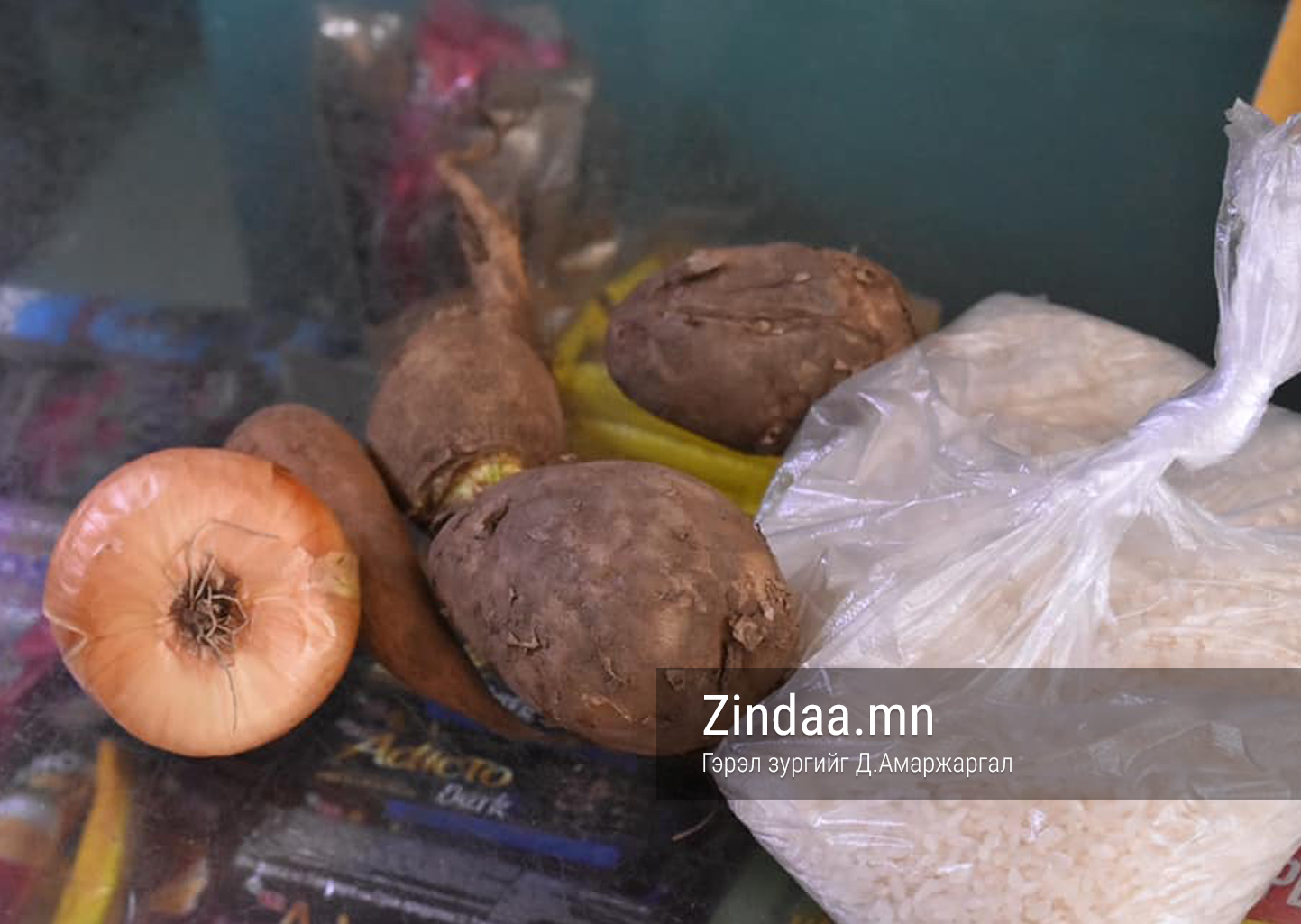 Будаа, сахарыг хүртэл граммаар нь хэмжиж авах нь их байдаг гэж ярих дэлгүүрийн худалдагчийг бид нэг өдрийн хоолны хэрэгцээ гэж юу авч байгааг тооцоолон харуулаач гэхэд гурван төмс, нэг лууван, нэг манжин, 500 грамм цагаан будааг өмнө минь тавив. Энэ бол нийтийн байранд амьдардаг залуусын нэг удаагийн хоолонд хэрэглэх бүтээгдэхүүн.