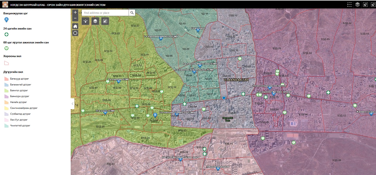 Нэгдсэн шуурхай штабын Мэдээлэл, технологийн багаас коронавируст халдварын эсрэг дархлаажуулалтын цэгүүдийн байршил, 24 цаг болон уртасгасан цагаар ажиллаж буй эмийн сангийн хаяг, байршлыг орон зайн дүн шинжилгээний системд байршууллаа.
