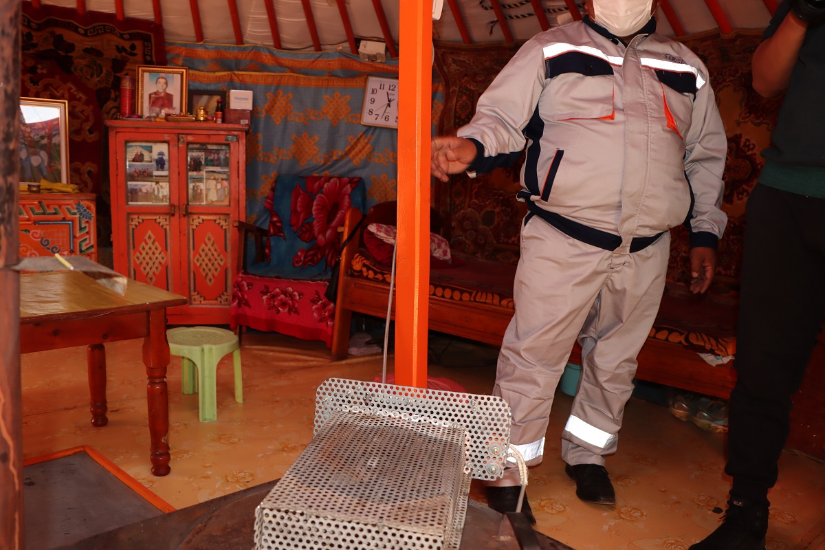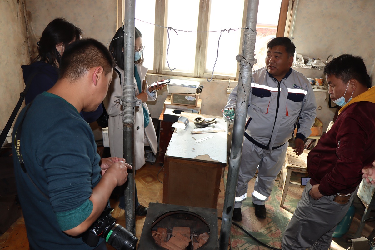 Бид  эхлээд нэгдүгээр хорооллын арын дэнжийн гэр хороололд очлоо. Энд зохион бүтээгч Ш.Алтангэрэл өөрийн хашаандаа бүтээлээ урлаж суугаа аж. “Уртын хүр” ХХК-ийн захирал Ш.Алтангэрэл өмнө нь “Чиглэл” компанид ажиллаж байсан бөгөөд өөрийн сонирхолоо даган, ур чадвараа ашиглаж олон айлыг яндангаас нь салгажээ. Тэрээр гэр, байшингийн халаагуур зохион бүтээдэг юм байна. Биднийг очиход тосож аваад өөрийн урлан болох жижиг байшин руу дагуулан орлоо. Хийсэн бэлэн халаагуурын нөөц нь бараг дууссан тул бидэнд үзүүлэхээр ганц хоёрыг үлдээгээд байгаа гэдгээ хэлсэн юм.