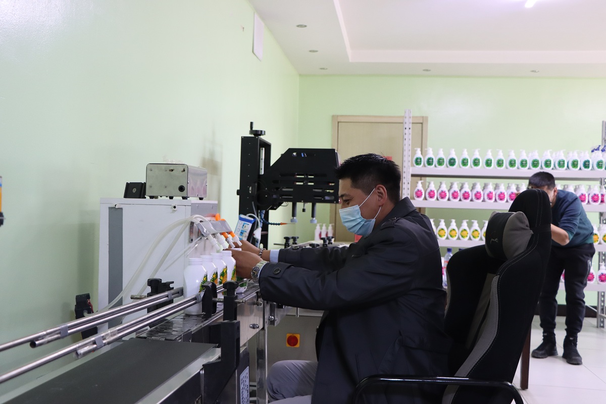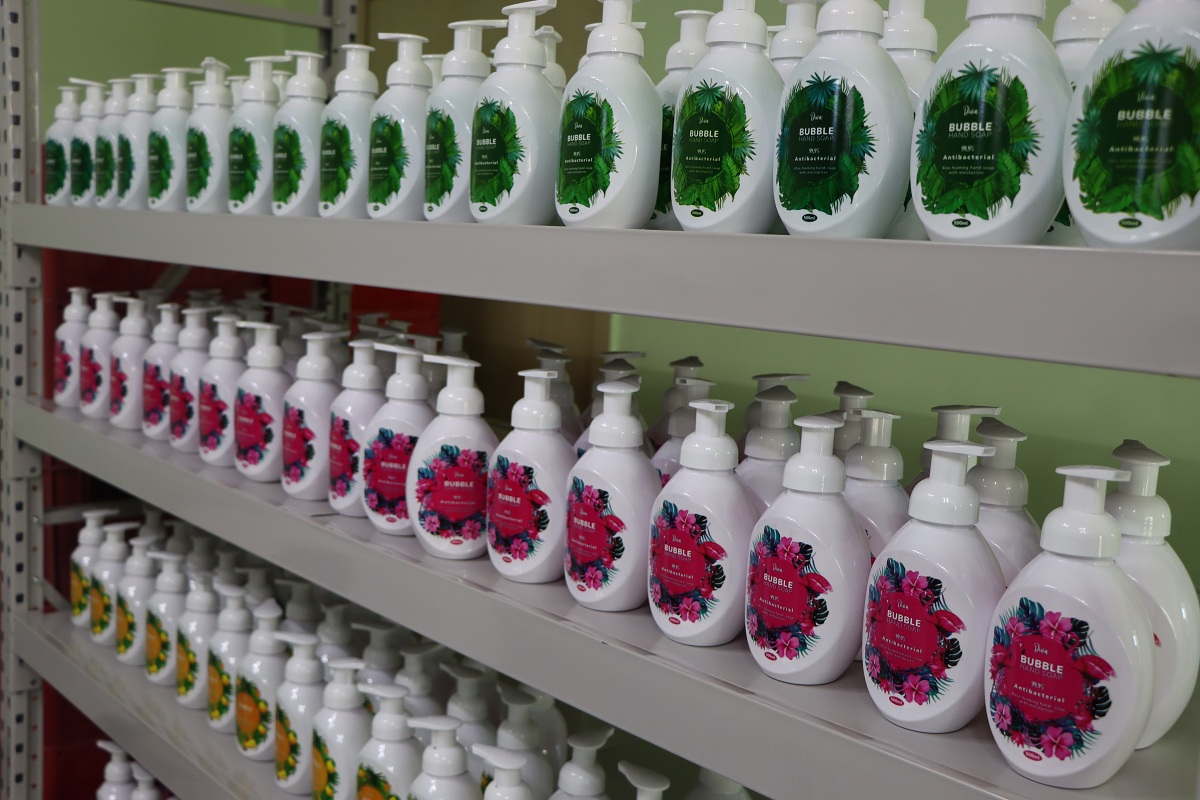 Бид бүхэн цааш хөдлөөд Толгойтын эцэс, Сэлэнгэ захын урд талд байрлах “Органик грийн фүүдс” компанийн савангийн үйлдвэрт очлоо. Тус компани 2015 оноос эхлэн өрхийн үйлдвэрлэлийн журмаар үйл ажиллагаагаа эхэлж байсан бол 2018 оноос компани болон өргөжсөн байна. Газар тариалан, хүлэмжийн аж ахуй, артишок эрүүл мэндийн цай, ундаа үйлдвэрлэл хийдэг аж. Харин 2020 оноос үйл ажиллагаагаа өргөжүүлэн хөөсөн саван, шил толь цэвэрлэгч хийж, ЖДҮГ-аас 300 сая төгрөгийн зээлийг хөнгөлөлттэй нөхцлөөр авчээ. Энэ нь дэлхий нийтийг хамарсан цар тахлын үе, эдийн засаг хүндхэн нөхцөлд үйл ажиллагаа тасрахгүй, улмаар амжилттай явахад том түлхэц болсон гэдгийг захирал Н.Баттөмөр хэлж байна.