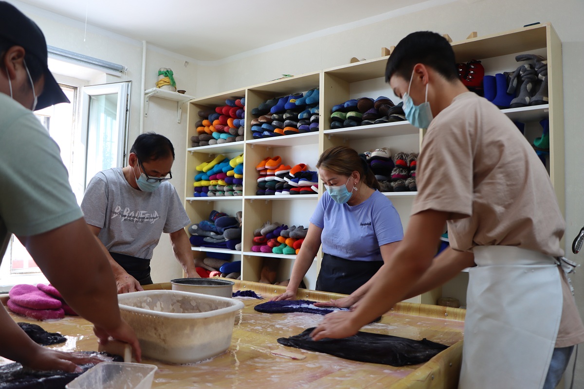 Байрны орц, хонгил дамжин үйлдвэрлэл эрхэлж явахдаа 3-4 хүн л ажилладаг байсан бол өдгөө арвуулаа болсон байна. Тэдний ажилчид 18-35 насны залуучууд байх бөгөөд хоёр нь хөгжлийн бэрхшээлтэй иргэн байгаа нь нийгмийн хариуцлагаа өндөрт ухамсарладаг нь анзаарагдаж байлаа. “Хану гүрэн” компани Баянхонгор аймгийн “Ноос ирээдүй” компаниар дамжуулан түүхий эд болох уртын ноосоо авдаг. Бас нэгэн гол түүхий эд болсон будгаа ОХУ-аас ганцхан газраас авдаг аж. Л.Энхчимэг эсгий гутландаа сайн ул олохын тулд нөхрийн хамт Хятад улсыг хөндлөн гулд туулжээ. Ингээд түүнийгээ Шинжин хотоос олж. Нутагтаа авч ирээд чанарыг нь шалгахын тулд гэрийнхээ хөлдөөгчийн 40 градуст хөлдөөж хүртэл үзэж байжээ. “Хүн төвтэй бизнесийг их хатуужилтай байж хийдэг зүйл” хэмээн тэрээр тодотгосон юм. Хатуужилтай байж чадсаныхаа хүчинд өдгөө тэд бүтээгдэхүүнээ Япон, Солонгос, Хятад, Скандинавийн орнууд, Канад, Швед зэрэг улсуудад экспортолж, дотоодынхоо хэрэглэгчдэд нэгэнт танил болсон байна.