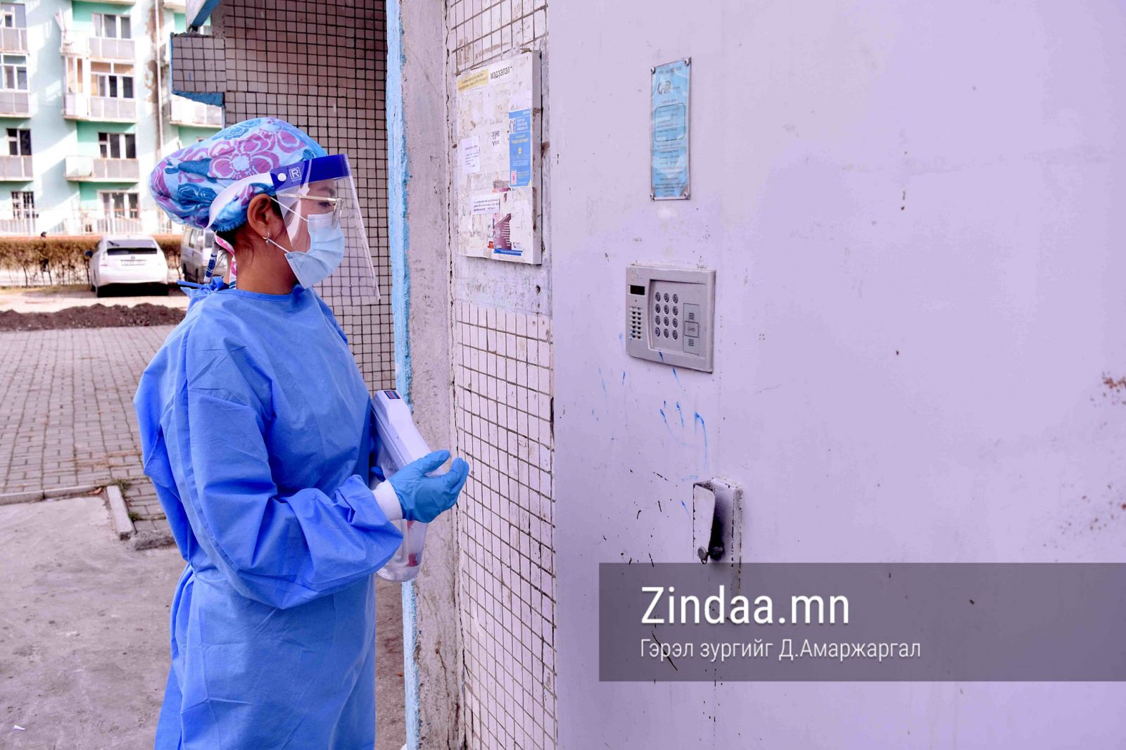 Өрхүүдээр орохоор явах замд эмчтэй цөөн хором ярилцав. Чингэлтэй дүүргийн 5-р хороонд өнгөрсөн есдүгээр сард 200 орчим хүн халдвар авчээ. Харин одоогийн байдлаар халдвар авч, гэртээ эмчлэгдэж буй 124 хүн байгаа аж.