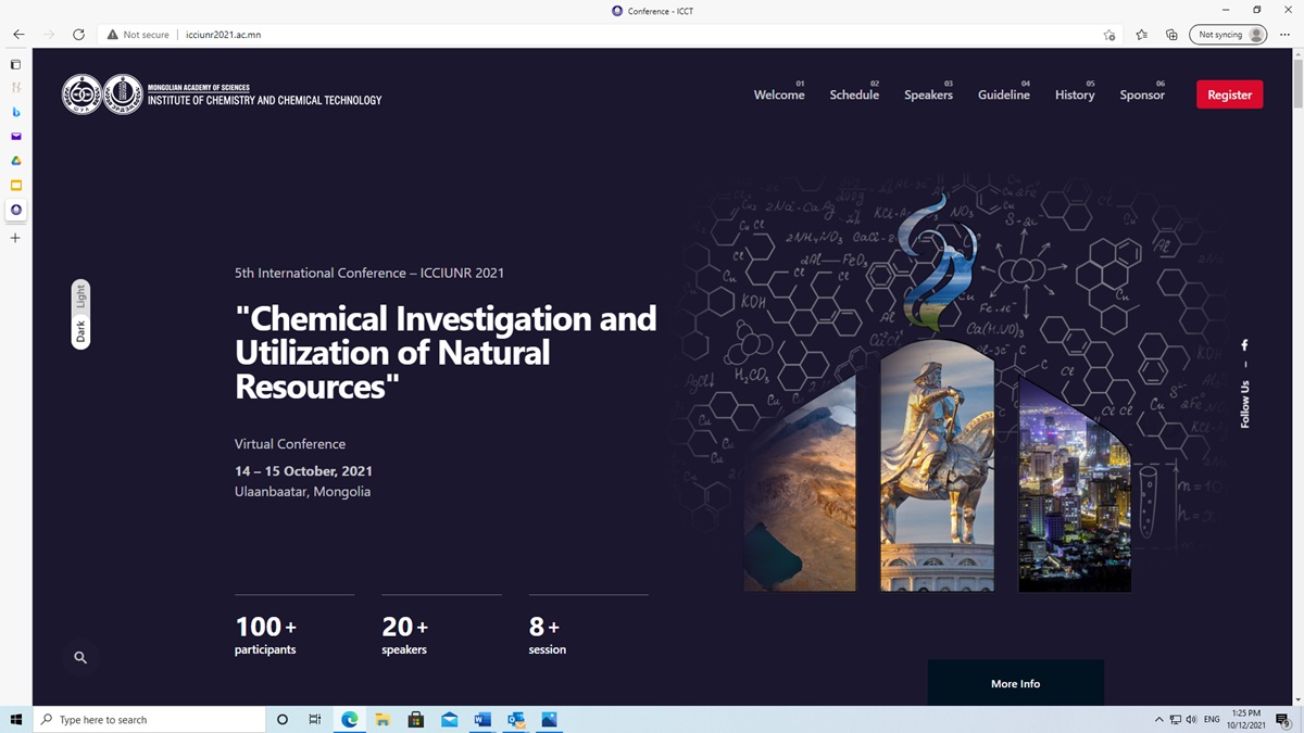 ШУА-ийн Хими, химийн технологийн хүрээлэн 1999 оноос “Байгалийн нөөцийн химийн судалгаа ба ашиглалт” олон улсын эрдэм шинжилгээний хурлыг 4 жил тутамд уламжлал болгон зохион байгуулж ирсэн бөгөөд энэ жил 5 дахь удаагийн хурлыг “Хими-тогтвортой хөгжлийн хурдасгуур" уриан доор 2021 оны 10 дугаар сарын 14-15-ны өдрүүдэд цахимаар зохион байгуулж байна.