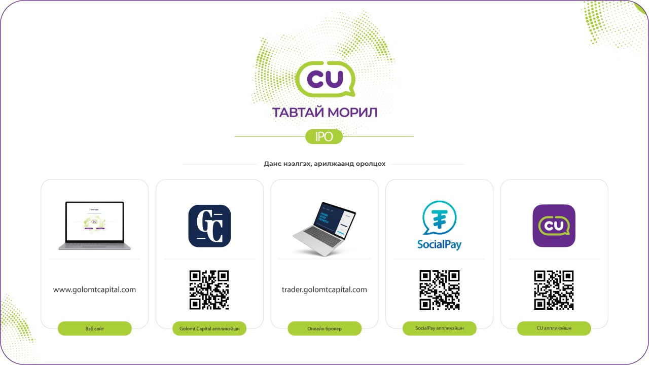2021 ОНЫ ХАМГИЙН АНХНЫ МОНГОЛЫН БҮХ ЦАГ ҮЕИЙН ХАМГИЙН ӨНДӨР ДҮНТЭЙ IPO ӨДРӨӨР ӨСӨЖ БУЙ “CU” БИЗНЕСТ ТАВТАЙ МОРИЛ