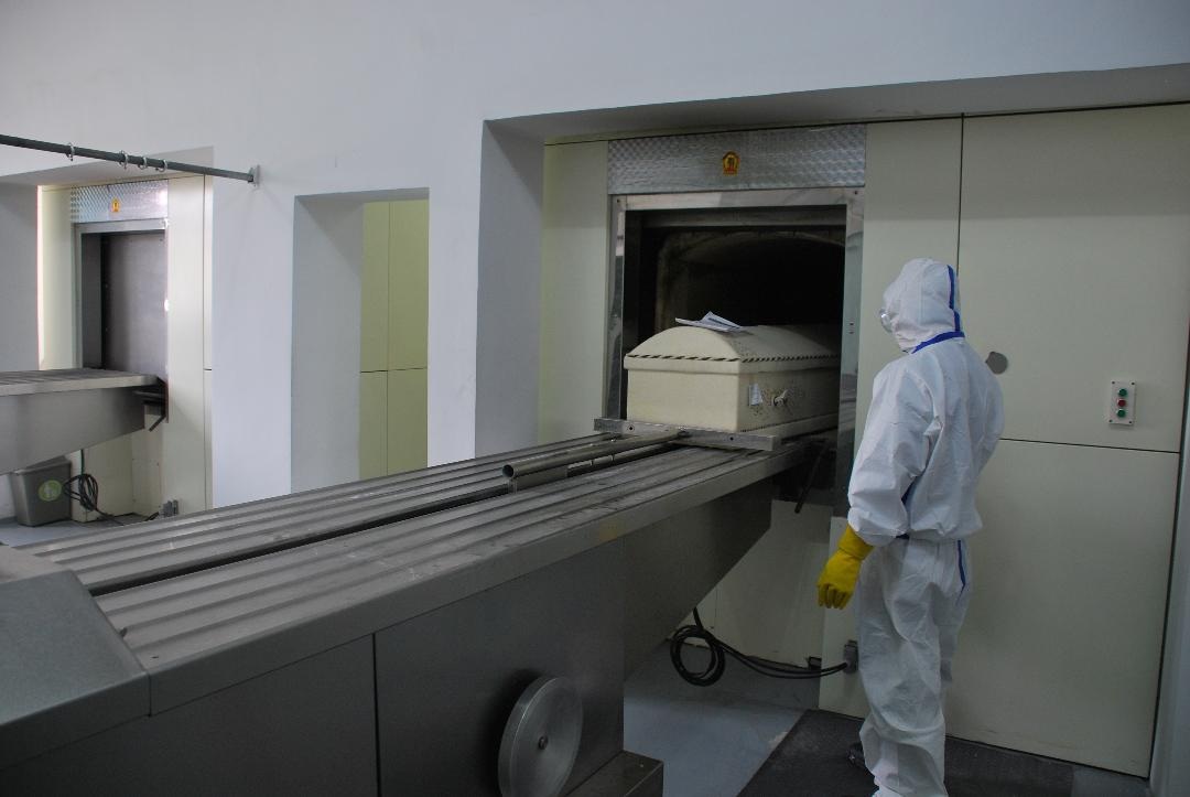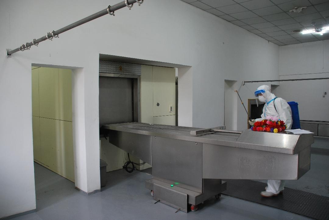 Оршуулгын ёслолд талийгаачийн гэр бүлийн 10 хүртэлх хүнийг оролцуулах шаардлагыг тавьж байв. Нүдээ бүлцийтэл уйлж, хэдэн өдөр нойргүй явсан болов уу гэмээр царай төрхтэй хүмүүс тус цогцолборын салах ёс гүйцэтгэх танхимд гэр бүлээ төлөөлөн хоёр, гурваараа оржээ. Энэхүү дэлгэцээр талийгаачийг чандарлах үйл явцыг харуулдаг байна.