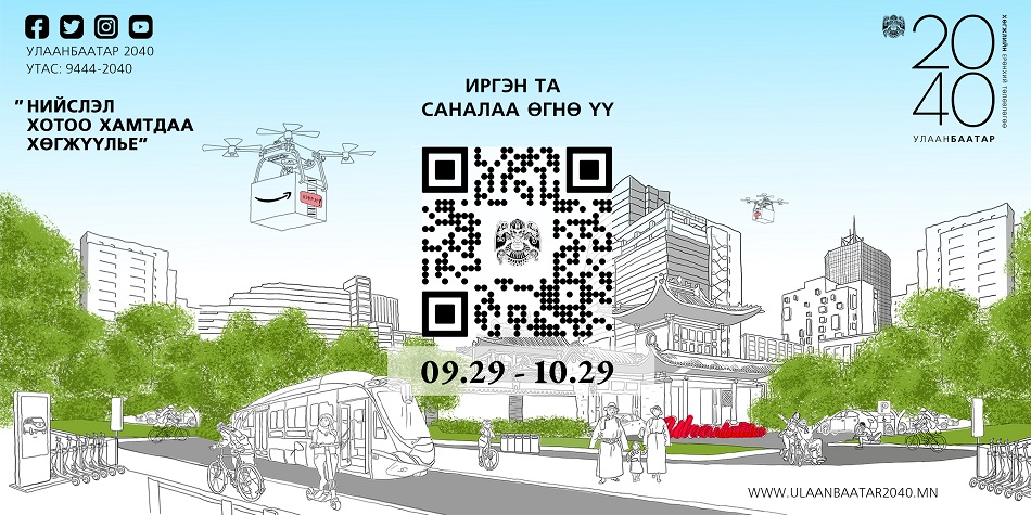 - Нийслэлийн хэмжээнд мөрдөн ажиллаж байгаа “Улаанбаатар хотыг 2020 он хүртэл хөгжүүлэх ерөнхий төлөвлөгөө, 2030 он хүртэлх хөгжлийн чиг хандлага"-ыг 2013 онд баталж байсан. Тус баримт бичгийн хэрэгжилтийн хугацаа дуусаж байгаатай холбогдуулан “Улаанбаатар хотын 2040 он хүртэлх хөгжлийн ерөнхий төлөвлөгөө” гурван үе шаттайгаар 2018 онд эхэлсэн. Мөн ерөнхий төлөвлөгөөний концепц буюу үзэл баримтлалыг гаргасан. Ингэхдээ иргэдийн оролцоог хангаж, нээлттэй концепцын уралдаан зарласан. Үүний дагуу гаргасан концепцыг 2020 оны засгийн газрын хуралдаанаар дэмжиж өнгөрөгч оны аравдугаар сард гэрээ байгуулж ажлаа эхэлсэн. Хөгжлийн ерөнхий төлөвлөгөөг боловсруулах ажилд иргэдийн оролцоо чухал. Хот байгуулалтын тухай хууль болон, хөгжлийн ерөнхий төлөвлөгөөг олон нийтээр хэлэлцэх журам бий. Энэ журмын дагуу бид олон нийтээс санал авах хэрэгтэй. Олон нийтээс санал авах ажил есдүгээр сарын 29-нөөс энэ сарын 29 хүртэл нэг сарын хугацаанд явж байгаа.