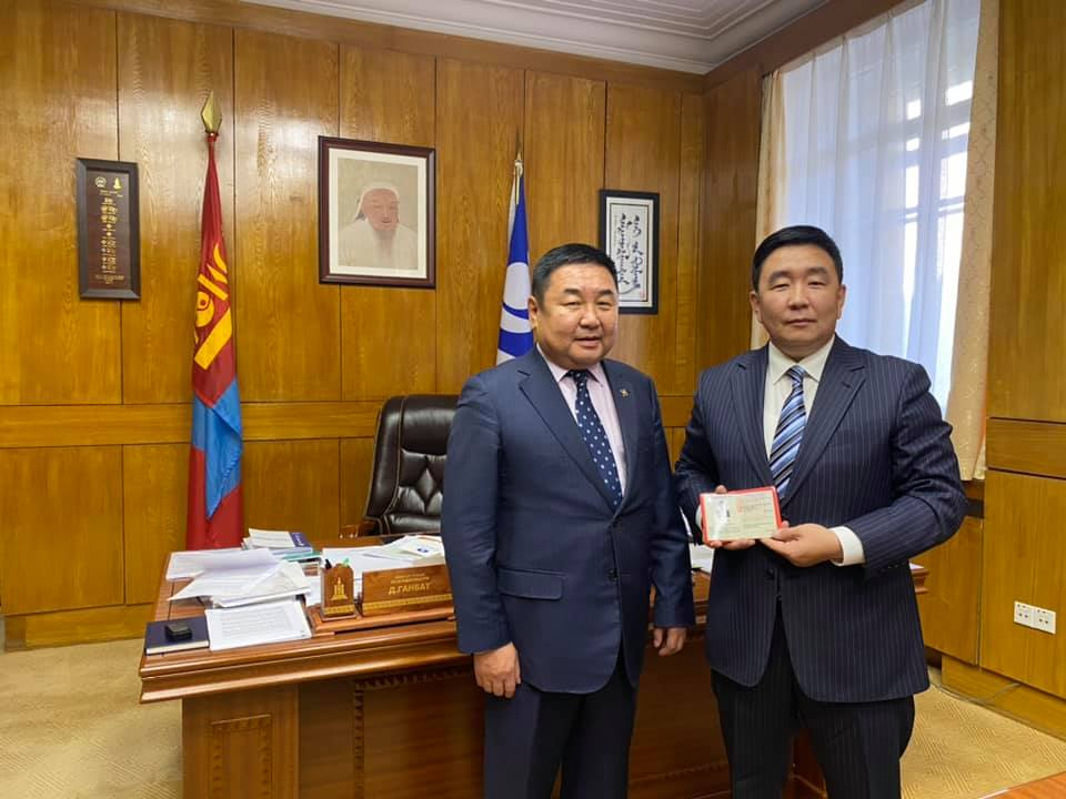 Тэрбээр зөвлөхөөр томилогдсон үнэмлэхээ Д.Ганбат даргаасаа гардан авсан юм. Энэ талаараа өөрийн цахим хуудаснаа "УИХ дахь АРДЧИЛСАН НАМЫН бүлгийн зөвлөхөөр томилогдлоо. УИХ-ын гишүүн, АН-ын бүлгийн дарга Д.Ганбатаас үнэмлэхээ гардаж авлаа. Төрийн ордны дотоод журам болон холбогдох хууль тогтоомжийг хүндэтгэж ажиллах болно. Монгол Төрийн минь сүлд ивээг" гэжээ.