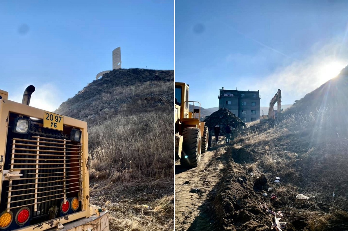 Зайсан толгой дээр буюу Зөвлөлтийн дайчдын дурсгалын цогцолборын яг хажууханд газар шорооны ажил явагдаж, газрыг ухаж эхэлсэн байгааг жүжигчин А.Мөнгөнзул фото зургаар баримтжуулан, өнөөдөр /2021.10.21/ өөрийн цахим хуудсаараа бухимдлаа илэрхийллээ.