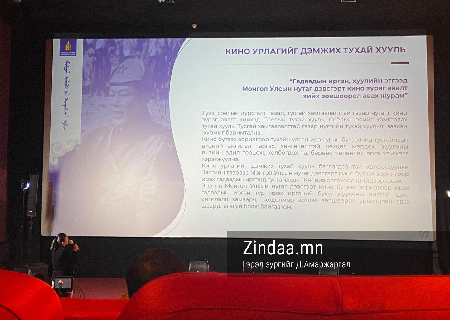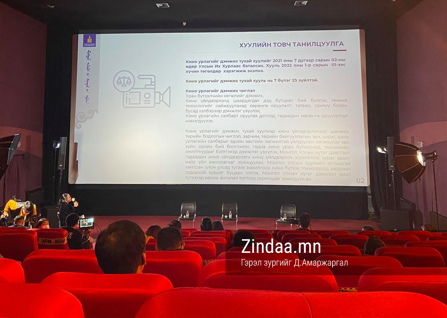 Соёлын яамны Урлаг, уран бүтээлийн бодлогын газрын дарга Б.Сэргэлэн кино урлагийг дэмжих тухай хуулиас танилцууллаа.