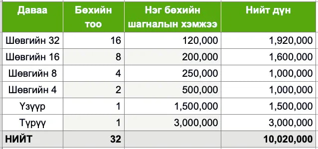 18:50 Тэмцээний хаалт, шагнал гардуулах ёслол