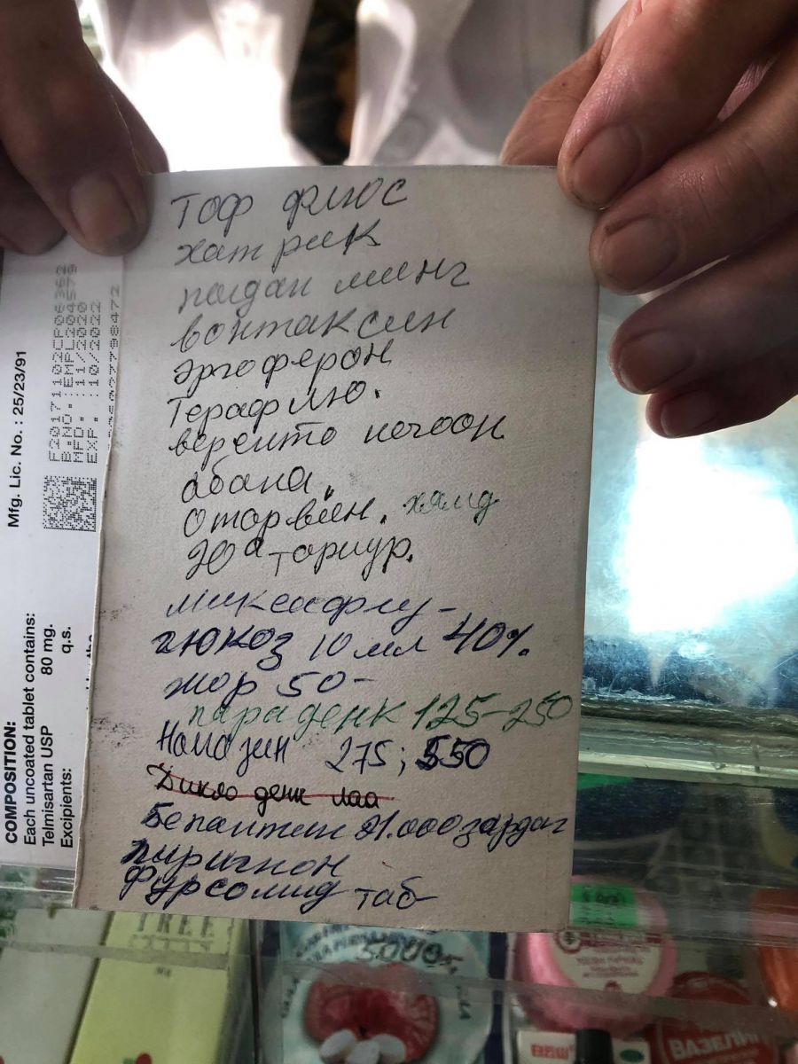 Эмчийн эмийн жор олгох цаас барьсан хижээл насны эмэгтэй эмийн сан нэг бүрчлэн ээлжлэн орно. Гэсэн хэдий ч гартаа нэг ч эм, тариа бариагүй байв. Гайхах, сонирхох зэрэгцсэндээ шалтгааныг асуулаа. Тэр эмэгтэйг Ж.Ичинхорлоо гэдэг аж. Ковид-19-ийн халдвар тусаад эдгэжээ. Халдварын дараах эм, тариагаа цуглуулж яваагаа учирлав. Эмийн сангуудаар хайгаад олдоогүй тул эм ханган нийлүүлэх төвөөр хайж буй нь энэ аж. Гэвч бүгд нэг ижил хариулт өгсөн байна.