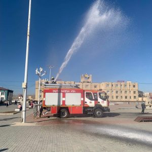 Багануур дүүргийн Д.Нацагдоржийн талбайд гал түймэр унтраах үндсэн албаны шинэ автомашинуудыг танилцуулж, байлдааны тархалт хийж усан хөшиг татан, лафитны хошуу ажиллуулах зэрэг үзүүлэх сургууль зохион байгуулж байна.