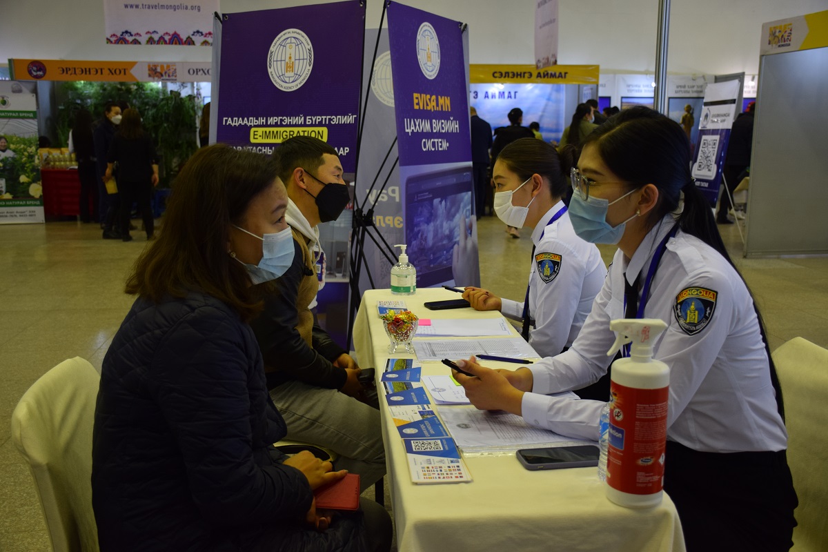 Уг үзэсгэлэнд Гадаадын иргэн, харьяатын газар оролцож, Гадаадын иргэний эрх зүйн байдлын тухай хуулийн нэмэлт өөрчлөлттэй холбоотой шинээр нэвтэрсэн цахим визийн талаар танилцууллаа.