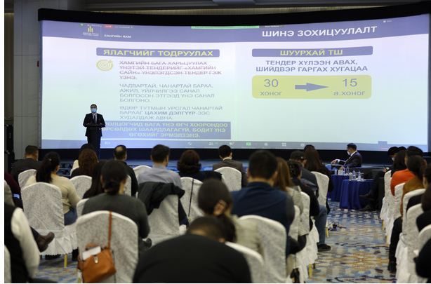 Сангийн яам, Монголын Үндэсний Худалдаа Аж Үйлдвэрийн Танхим хамтран тендерт оролцогч аж ахуйн нэгжүүдийн дунд Төрийн болон орон нутгийн өмчийн хөрөнгөөр бараа, ажил, үйлчилгээ худалдан авах тухай хуулийн шинэчилсэн найруулгын төслийн хэлэлцүүлгийг зохион байгууллаа. Хэлэлцүүлэгт Сангийн дэд сайд С.Мөнгөнчимэг, Монголын Үндэсний Худалдаа Аж Үйлдвэрийн Танхимын ерөнхийлөгч О.Амартүвшин болон холбогдох албаны хүмүүс, аж ахуйн нэгжийн төлөөлөл оролцлоо.