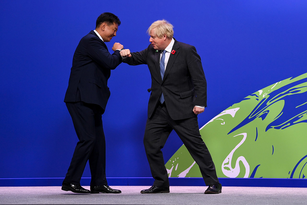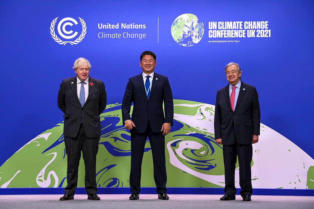 Монгол Улсын Ерөнхийлөгч У.Хүрэлсүх 2021 оны арваннэгдүгээр сарын 1-2-ны өдрүүдэд ИБУИНХУ-ын Глазгоу хотноо Уур амьсгалын өөрчлөлтийн асуудлаарх дэлхийн удирдагчдын дээд түвшний уулзалтад оролцож байна.