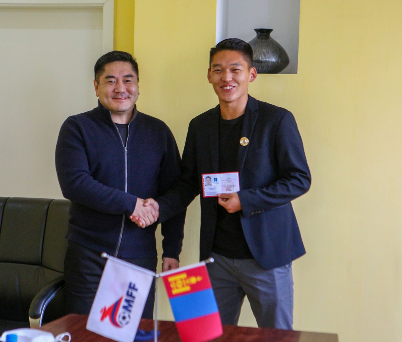 Азийн 23 хүртэлх насны АШТ-ий урьдчилсан шатны тоглолтуудад оролцохоор эх орондоо ирсэн Г.Ганбаярт МХБХ-ны Ерөнхийлөгч А.Ганбаатар цол тэмдгийг нь гардуулсан юм.