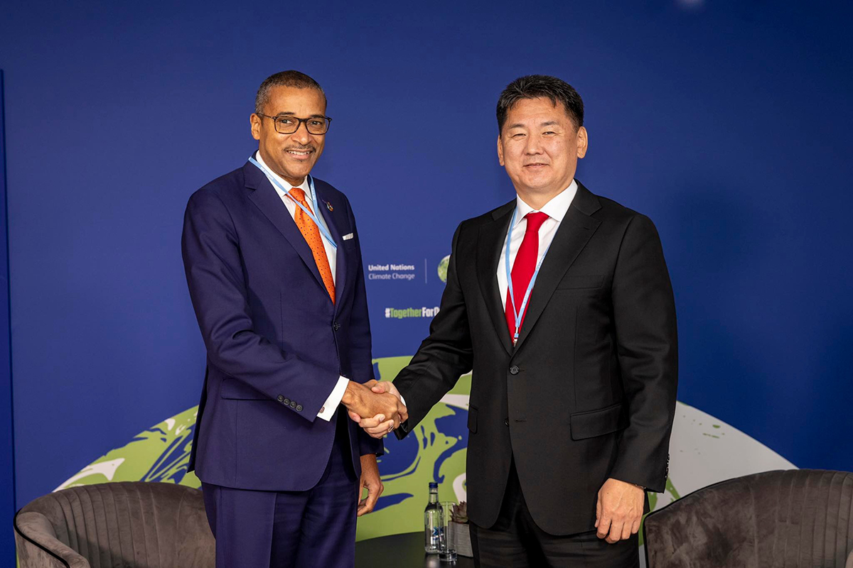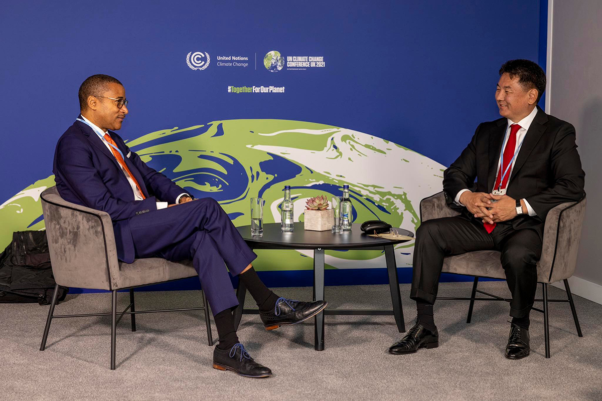 Монгол Улсын Ерөнхийлөгч У.Хүрэлсүх Уур амьсгалын өөрчлөлтийн асуудлаарх дэлхийн удирдагчдын дээд түвшний уулзалтын үеэр НҮБ-ын Ерөнхий нарийн бичгийн даргын орлогч бөгөөд НҮБ-ын Нэн буурай хөгжилтэй, далайд гарцгүй хөгжиж буй болон арлын жижиг орнуудын асуудал эрхэлсэн Дээд төлөөлөгч Кортней Раттрейтэй уулзаж, хамтын ажиллагааны асуудлаар санал солилцов.