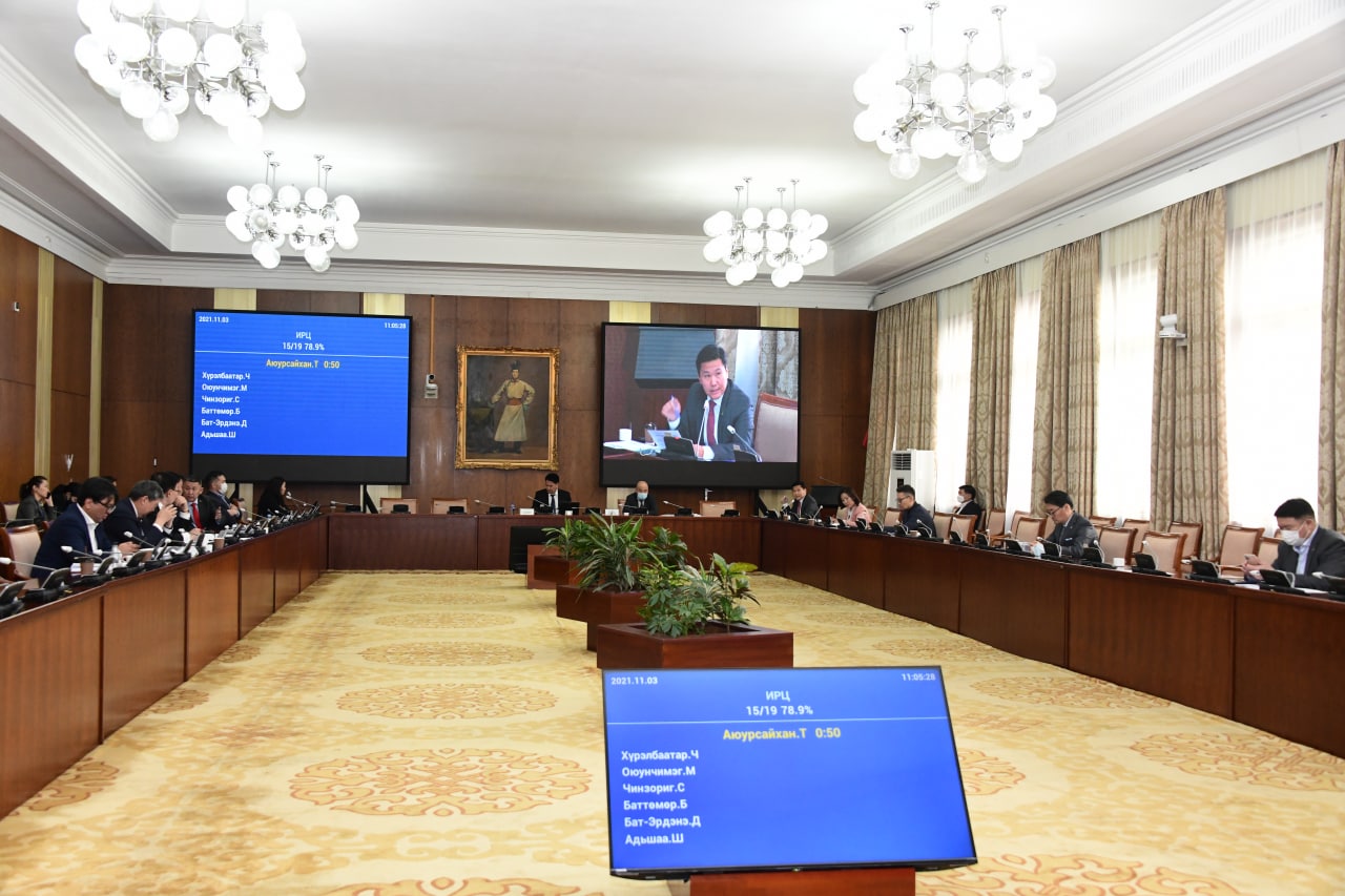 Байнгын хорооны тогтоолын төсөлтэй холбогдуулан Улсын Их Хурлын гишүүн Б.Оюунчимэг Банк бус санхүүгийн байгууллагын тухай хуулийн шинэчилсэн найруулгын төслийг Улсын Их Хуралд өргөн мэдүүлэхээр хугацаа товлосон бөгөөд энэ сард хэлэлцэх асуудлын дараалалд оруулах саналыг хэлэв. Ингээд санал хураалт явуулахад хуралдаанд оролцсон гишүүд санал нэгтэйгээр дэмжин “Монгол Улсын Их Хурлын 2021 оны намрын ээлжит чуулганы арван нэгдүгээр сард Эдийн засгийн байнгын хорооны хэлэлцэх асуудлын цаглавар батлах тухай” Байнгын хорооны тогтоол баталсан.