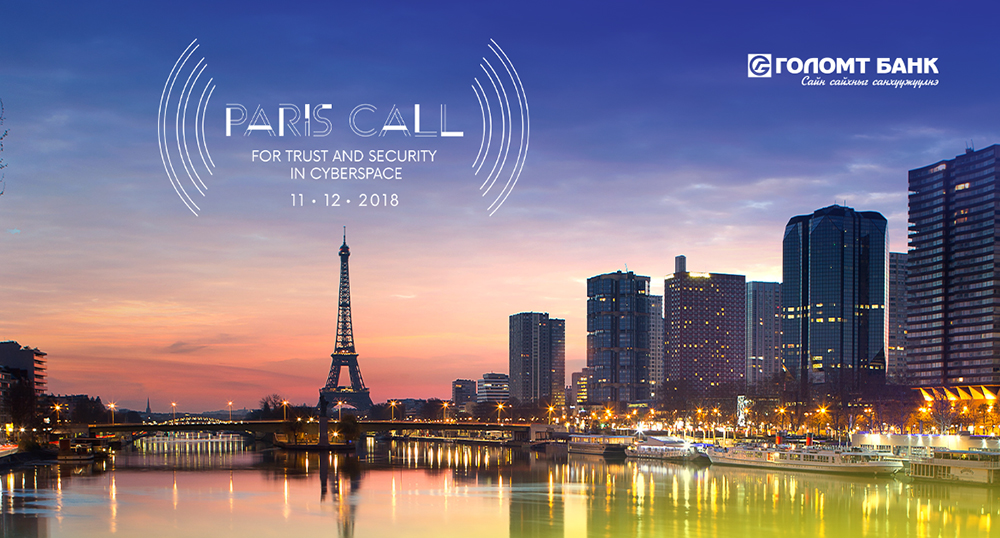 Олон улсын кибер орчин дахь аюулгүй байдлын хамтын ажиллагааны томоохон төсөл болох кибер аюулгүй байдлыг хангах Парисын харилцан итгэлцлийн уриалгад Голомт банк нэгдлээ. Энэхүү уриалгыг Франц улсын ерөнхийлөгч Эммануэл Макроны санаачилгаар 2018 оноос хэрэгжүүлж буй бөгөөд дижитал орон зайд энхтайван, кибер аюулгүй байдлыг хангах ажилд олон улсын төрийн болон төрийн бус байгууллага, хувийн хэвшил, иргэний нийгмийн байгууллагуудыг нэгтгэх зорилготой юм.