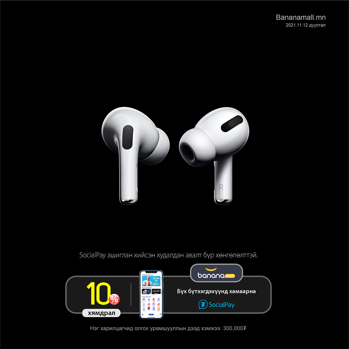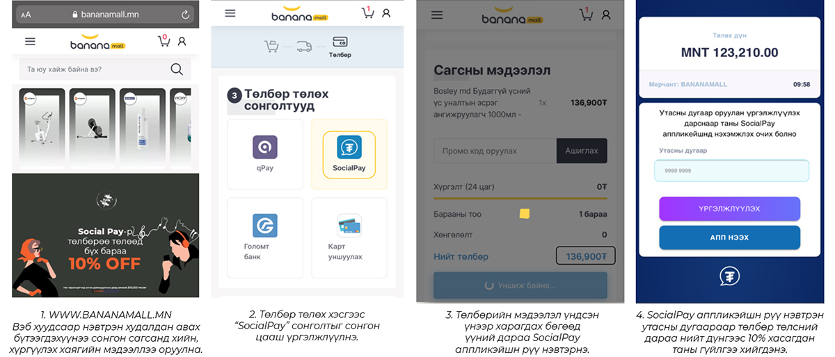 Хэрэглэгчдээ үргэлж хайрладаг SocialPay аппликэйшн Bananamall.mn-тай хамтран нэгэн шинэ урамшууллыг зарлаж байна. Та SocialPay аппликэйшн ашиглан Bananamall.mn-ээс худалдан авалт хийгээд 10%-ийн хөнгөлөлт эдлээрэй.