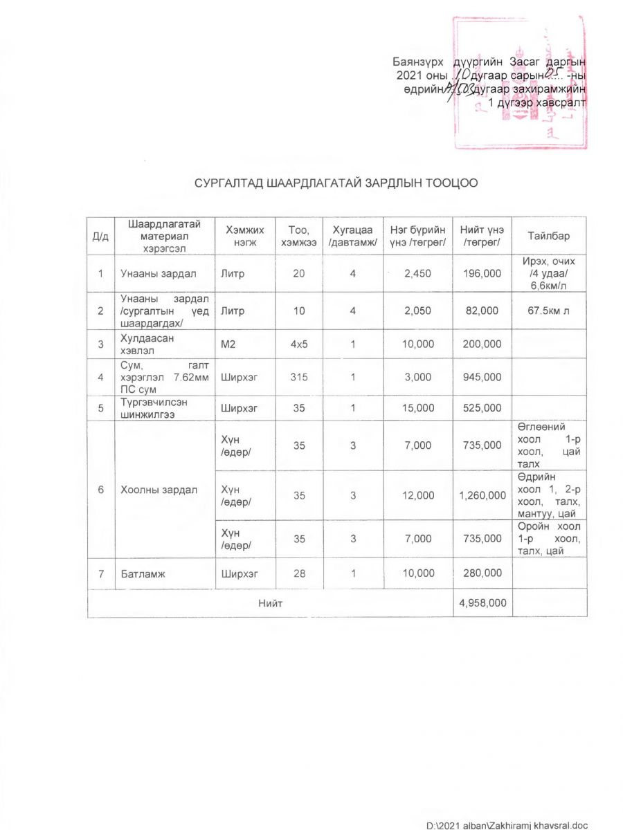 Харин хороодын Засаг дарга нарын өмссөн хувцас хэрэглэлийн хувьд “Эрдэнэс” гэрээт харуул хамгаалалын албанаас авч ашиглан, эргүүлэн өгөхөөр тохирсон. Хувцас нь аль нэг улс, орны цэргийн зориулалтын хувцас биш, хөдөлмөр хамгааллын хувцас гэдгийг мэдэгдье.