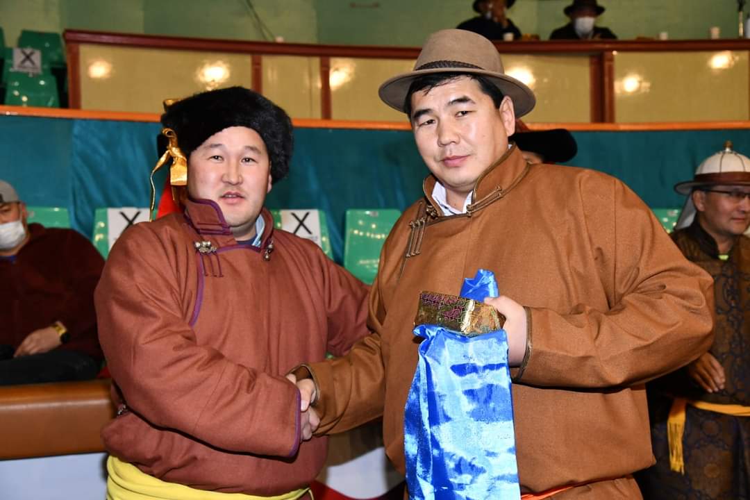 Өнөөдрийн барилдаан дээр Монголын Үндэсний Спортын Хорооны тамгаа албан ёсоор ерөнхийлөгчөөр сонгогдсон МҮБХ-ны тэргүүн, улсын заан Ц.Магалжавт гардуулан өглөө.