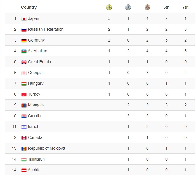 Тус тэмцээнд Японы баг тэргүүлж, ОХУ, Германы баг удаалсан байна.