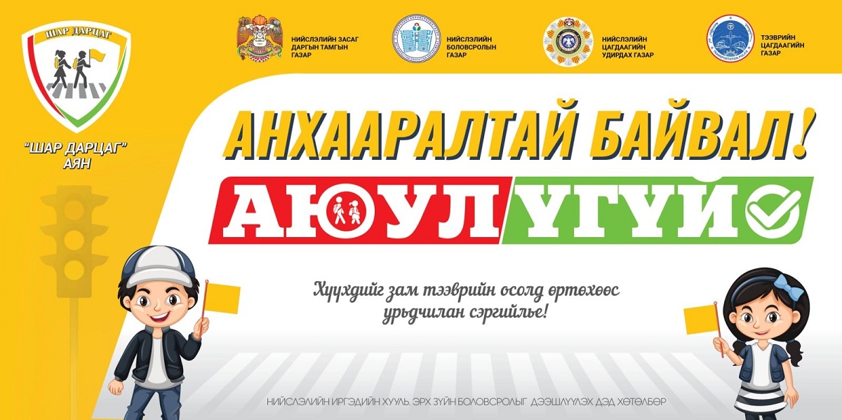 Нийслэлийн Засаг дарга бөгөөд Улаанбаатар хотын Захирагчийн захирамжийн дагуу замын хөдөлгөөнд оролцогчийн аюулгүй байдлыг хангах, хүүхдийг гэмт хэрэг, зөрчилд өртөхөөс урьдчилан сэргийлэх, хохирогч болох эрсдэлийг бууруулах, Замын хөдөлгөөний аюулгүй байдлын тухай хууль, дүрмийг сурталчлах, зөв дадал хэвшлийг бий болгох зорилготой “Шар дарцаг” аян өчигдрөөс /2021.11.09/ эхэллээ.