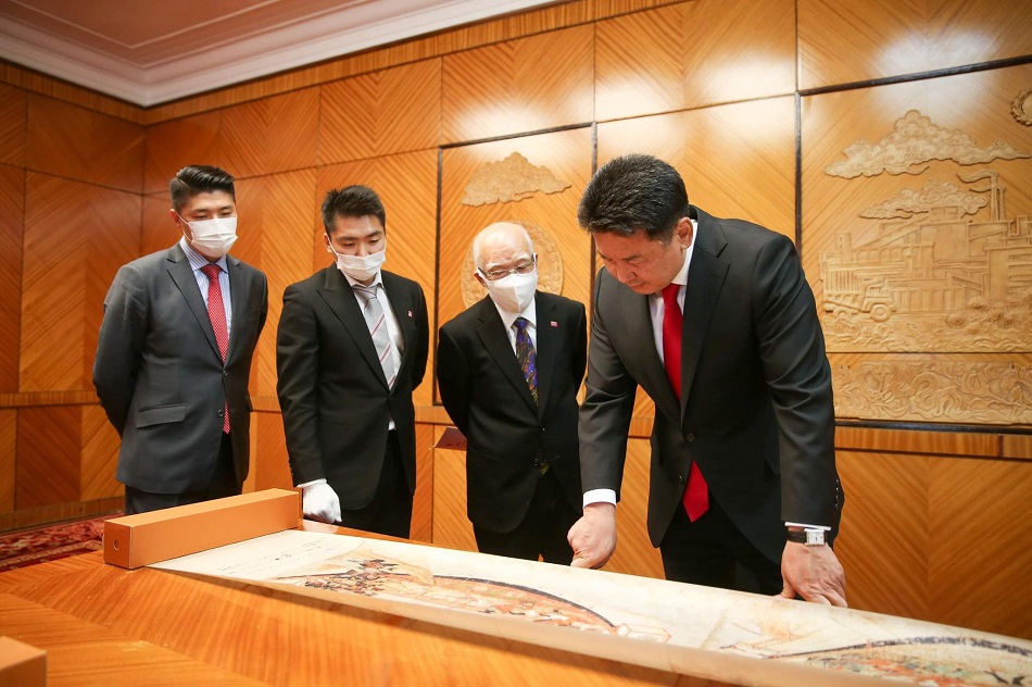 Өргөмжит консул Япон Улсын Эзэн хааны ордонд хадгалагдаж буй “Юань гүрний цэргийн довтолгооныг дүрсэлсэн хуйлмал гар зургууд” болон Нара мужийн “Тэнри” их сургуулийн номын санд хадгалагдаж буй Чингис хааны “Гэрэгэ”-ний А хуулбарыг хүлээлгэн өгөв.