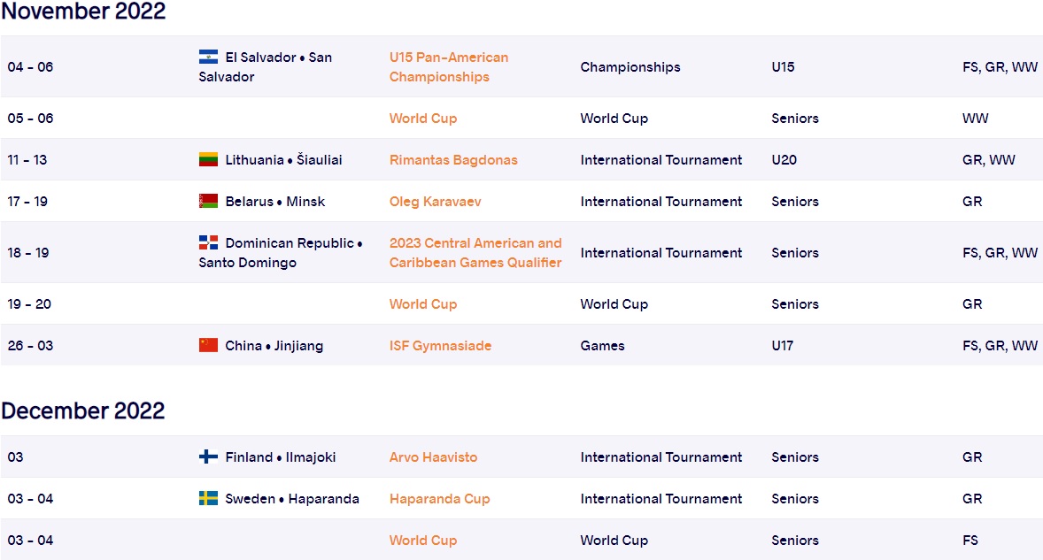 Цар тахлын улмаас хуваарьт өөрчлөлт орж магадгүй байгаа. 2022 онд ОХУ, Болгар, Турк, Румынд хамгийн олон тэмцээн болох бол АНУ, Иран, Японд тэмцээн болохгүй.