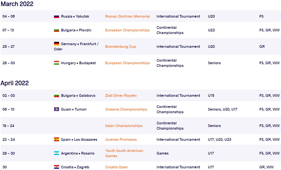 Дэлхийн бөхийн нэгдсэн холбооноос ирэх 2022 оны тэмцээн уралдааны хуваарийг танилцууллаа.