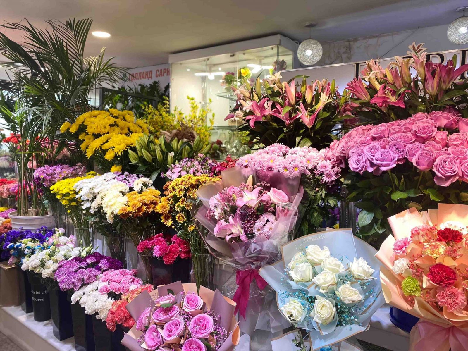 Тухайлбал, зургаан ширхэг лили цэцэгтэй баглаа нь 120 мянган төгрөгийн үнэтэй гэв. Харин хажууханд нь байрлах “Flowers” хэмээх нэртэй лангуунд нэг ширхэг сарнай 10000 төгрөгийн үнэтэй байлаа. Баглаа цэцгийн хувьд 80 мянган төгрөгөөс үнэ нь эхэлж байсан юм. Гэхдээ үйлчлүүлэгчдийн сонгосон цэцгийн тоо, боолтны загвараас шалтгаалан үнэ нь ялгаатай байдаг гэнэ.