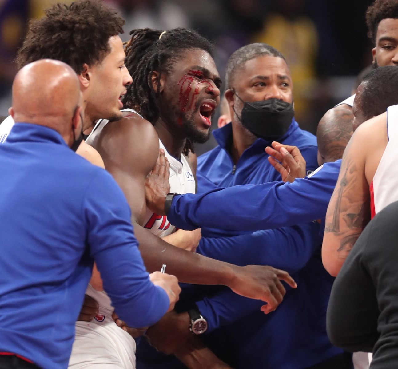 Детройтод болсон Пистонс, Лейкерс багийн тоглолтын үеэр зодоон гарах дөхлөө.