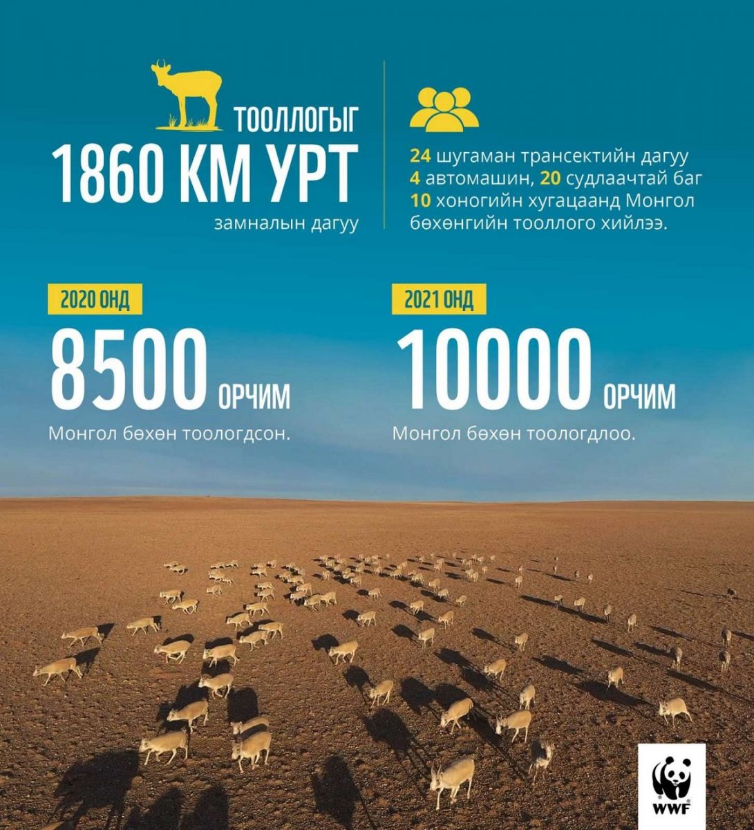 Дэлхийн байгаль хамгаалах сангийн Монгол дахь хөтөлбөрийн газрын мэргэжилтнүүд, “Бөхөн хамгаалах сүлжээ” багийнхан хамтарч бөхийн тооллого судалгааг 2021 оны аравдугаар сарын 30-наас арваннэгдүгээр сарын 8-ний өдрүүдэд хийжээ. Хээрийн судалгааны ажлын үр дүнд монгол бөхөнгийн тоо толгой 10 мянга орчим байгааг тогтоосон байна.