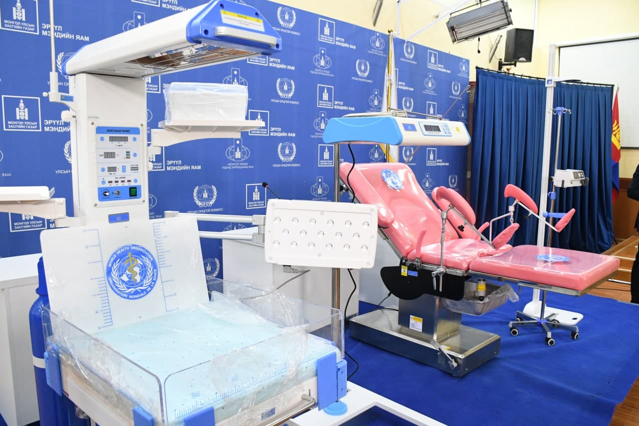 Дэлхийн Эрүүл Мэндийн Байгууллагаас эх, нярайн тусламж, үйлчилгээнд нэн шаардлагатай тоног төхөөрөмж болох хөгжлийн бэрхшээлтэй иргэнд зориулсан төрөх ор, нярайн дулаацуулах ширээ, нярайн шарлалтын эмчилгээний аппарат,  өвчтөний монитор, автомат тариурын шахуурга зэрэг 13 нэр төрлийн багаж тоног, төхөөрөмжийг Нийслэлийн Өргөө, Хүрээ, Амгалан амаржих газар болон Архангай, Баянхонгор, Дорноговь, Завхан, Увс, Ховд, Хөвсгөл, Хэнтий аймгийн төрөх тасгуудад хүлээлгэн өгч байна. Тоног төхөөрөмж гардуулах ёслолд Эрүүл мэндийн сайд С.Энхболд, Дэлхийн Эрүүл Мэндийн Байгууллагын суурин төлөөлөгч Сергей Диордица нар оролцон Нийслэлийн Өргөө, Хүрээ, Амгалан амаржих газар болон орон нутгийн төлөөлөл болох Төв аймгийн Эрүүл мэндийн газарт хүлээлгэн өглөө.