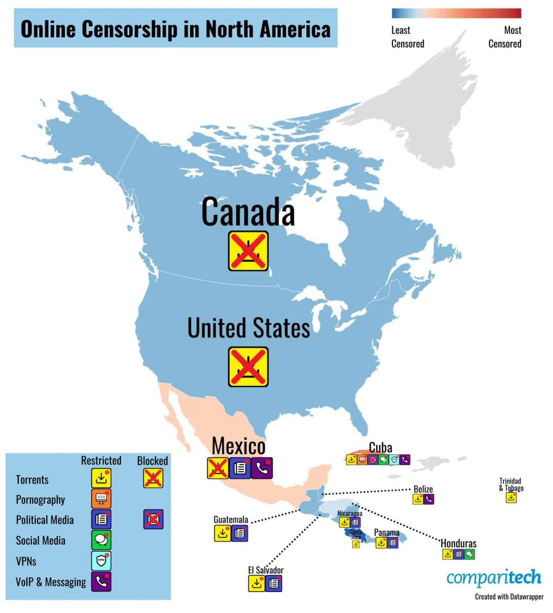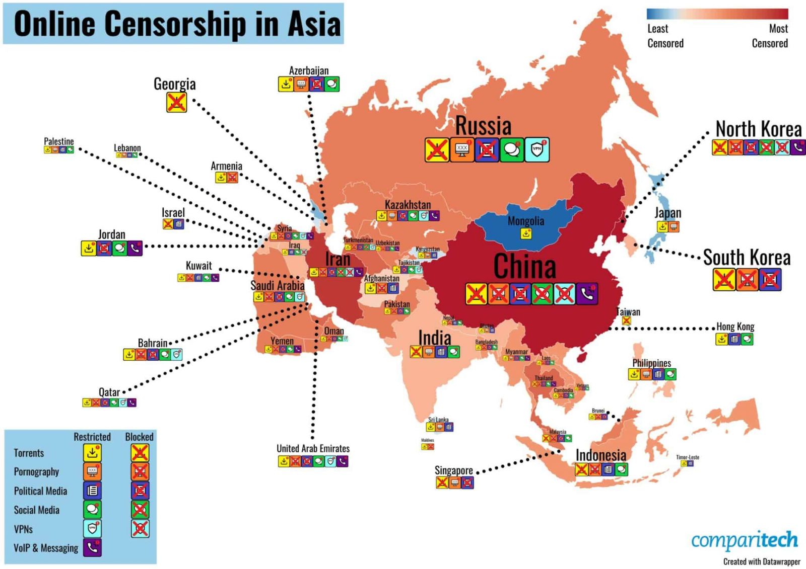Их Британийн Сomparitech дэлхийн улс орнуудын интернет цензурын чансааг гаргалаа. Интернет цензурийг янз бүрийн торрент, порно сайт, олон нийтийн сүлжээ, VPN, улс төрийн хэвлэл, мессенжер, VoIP хязгааралалт, хориг байдаг эсэхээр гаргасан байна.