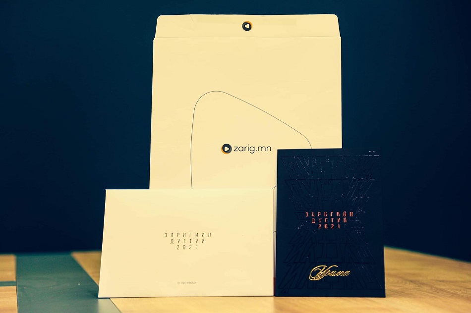 “Ган Үзэгтэн” ХХК-ийн Zarig.mn видео сайт нийгмийн хариуцлагын хүрээнд “Заригийн дугтуй” эвентийг 2021 оны арваннэгдүгээр сарын 25-ны өдөр буюу өнөөдөр /2021.11.25/ зохион байгуулна. Уг арга хэмжээнд УИХ-ын байнгын хороодын дарга нар, яам, агентлаг, нийслэлийн удирдлагууд, аж ахуйн нэгжийн төлөөлөл бүхий нийт 99 зочин урилгаар оролцоно.