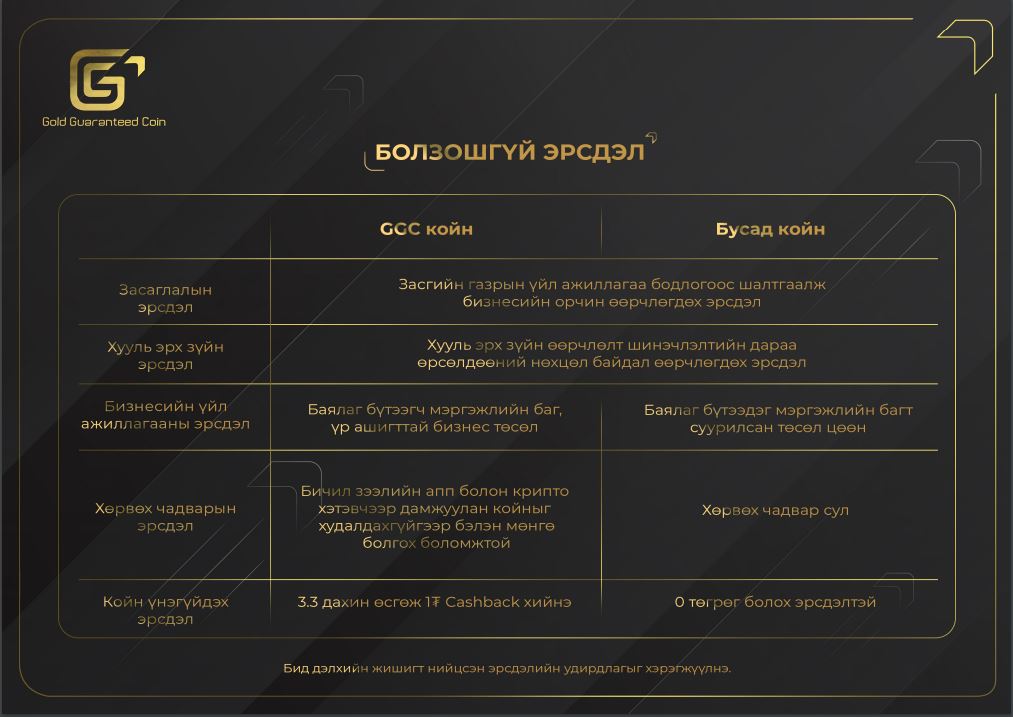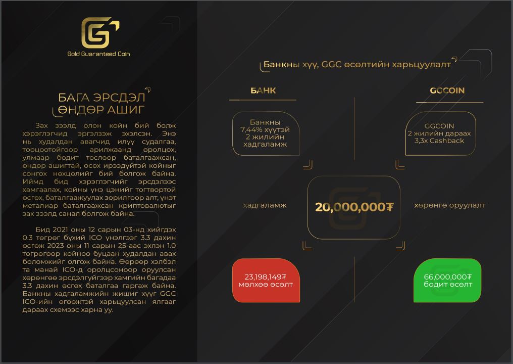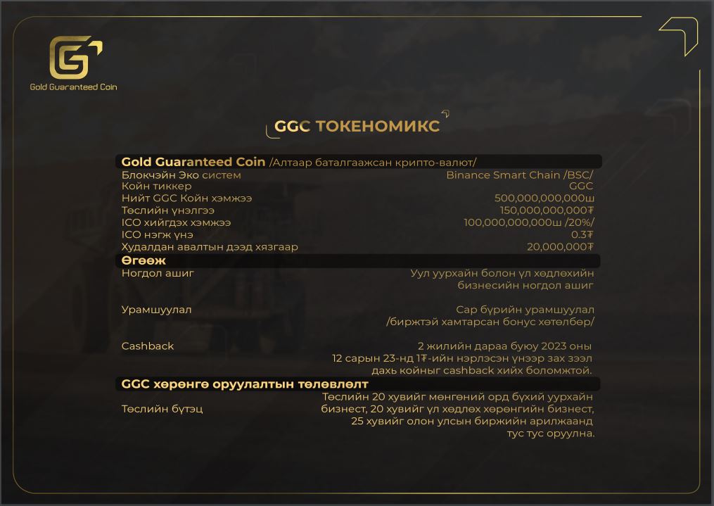Gold Guaranteed Coin /GGC/ төслийн мэдээлэл авах пэйж хуудас: GGC-Gold Guaranteed Coin